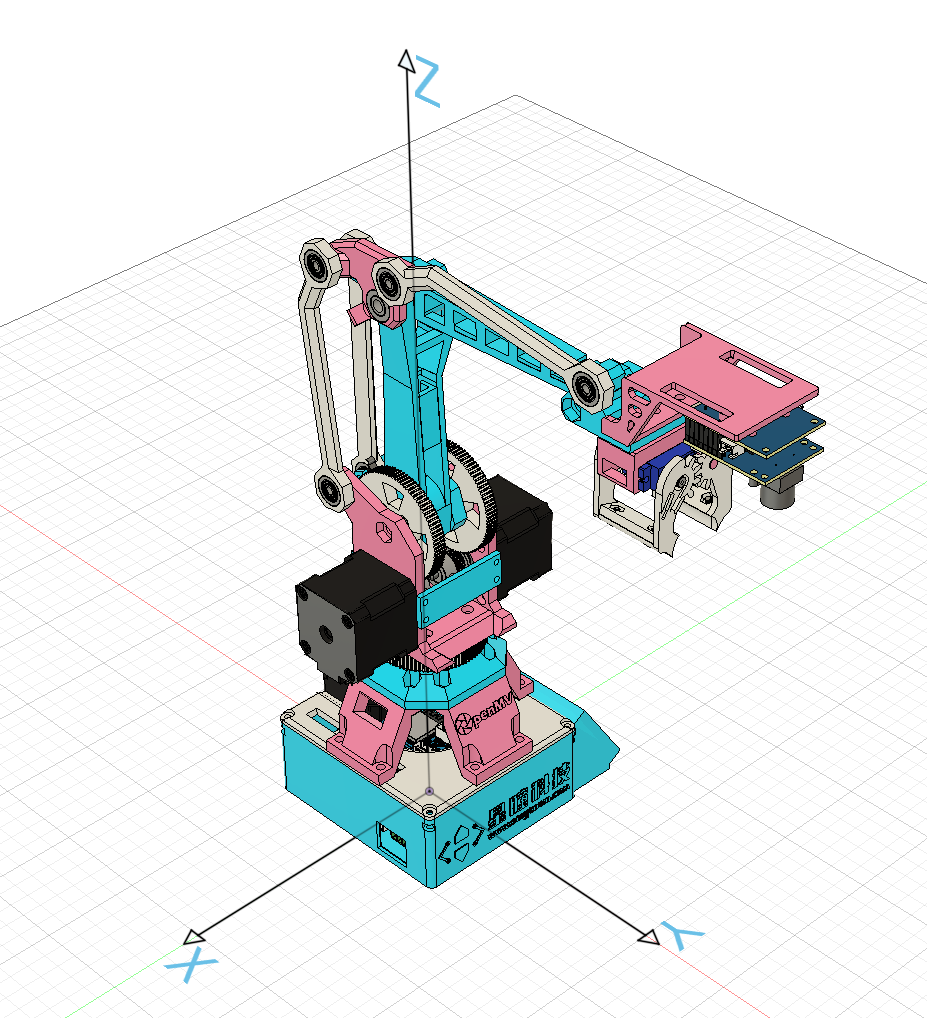 机械臂遵循空间直角坐标系,坐标原点为三轴的相交点