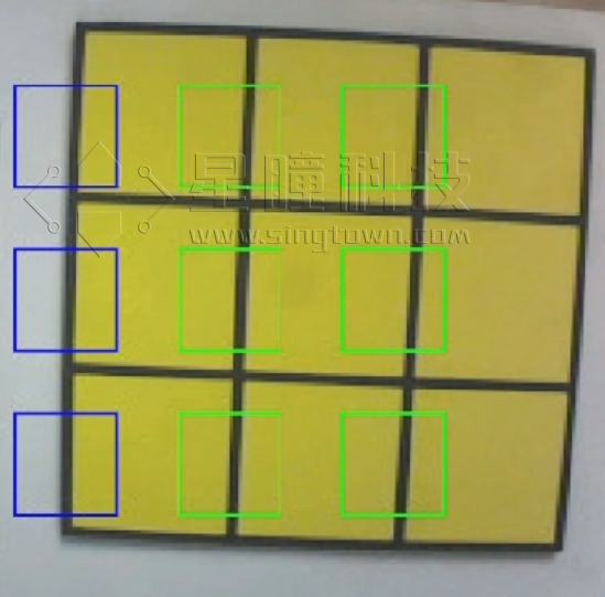 九宫格检测框的作用是划分出各个三子棋的检测区域,类似于 ROI。调用 AI 神经网络对单独格子进行识别,连续 9 次,即可得到完整九宫格中落子的情况。