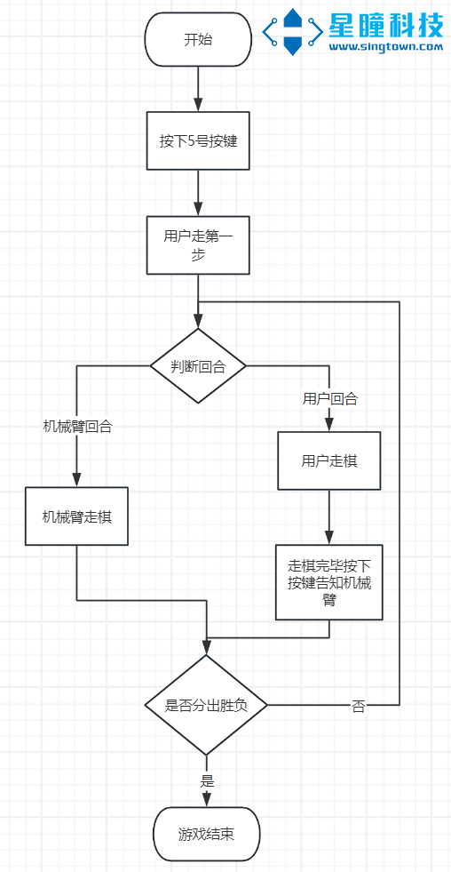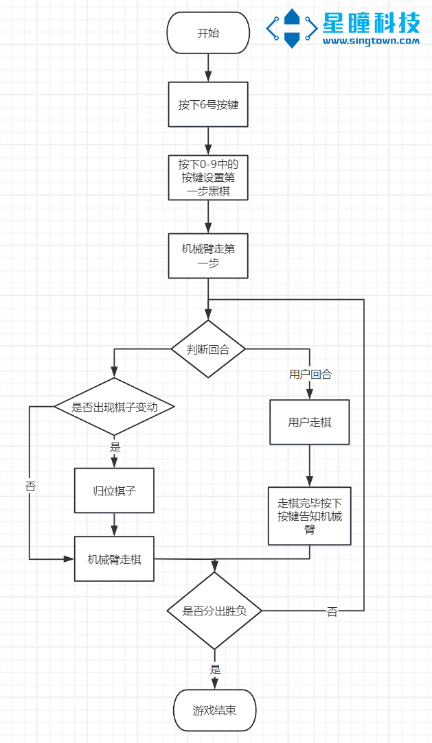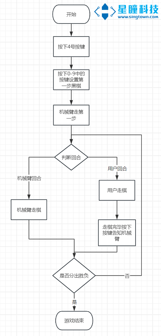 - 用户按键告知机械臂用户走棋完毕
