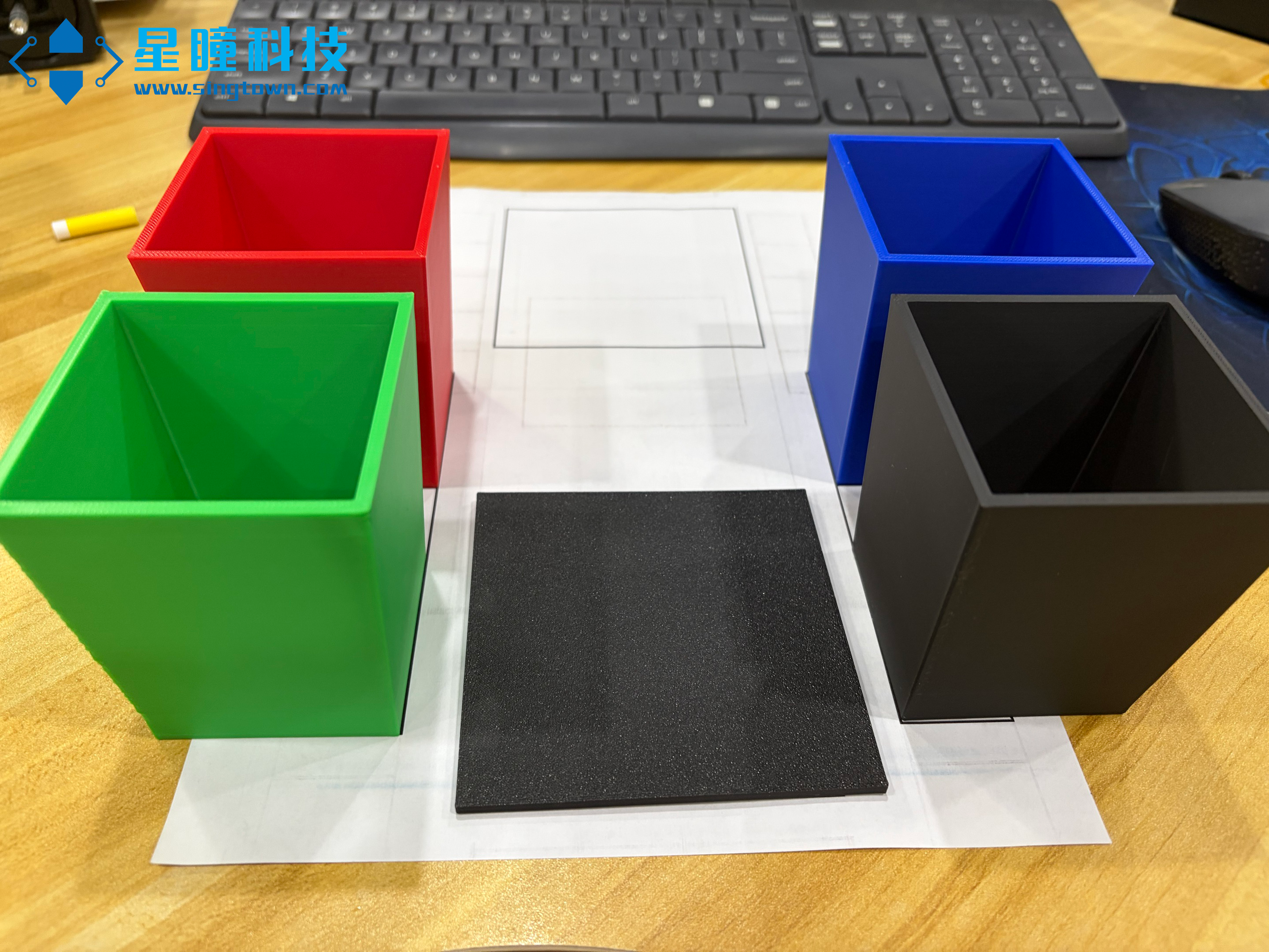 - 垃圾桶和托盘摆放,托盘为三子棋棋盘的反面: