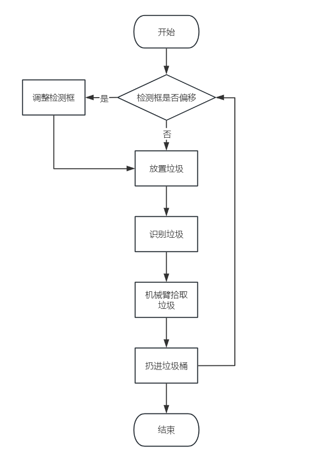 机械臂将自动拾取垃圾,将垃圾放置于对应的垃圾桶内;